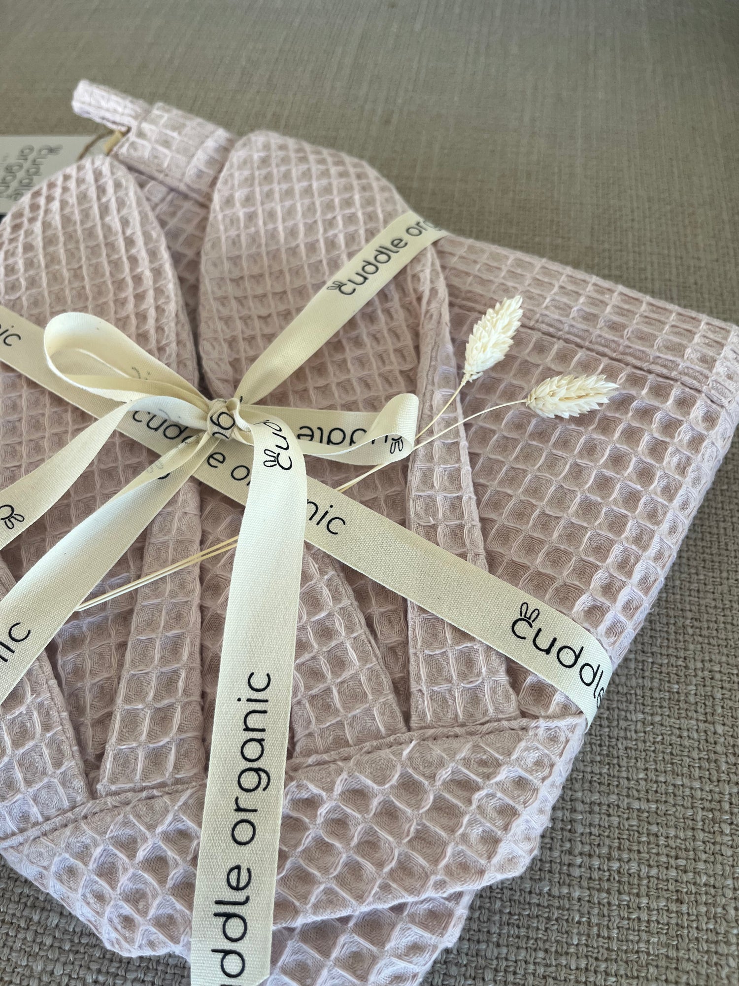 The unique waffle texture gives the fabric an incredibly soft feel, while also making it highly absorbent and quick-drying. That’s why our towels as well as our beach and bath clothing are the perfect companions not only at home but also for a day out at the beach or pool.