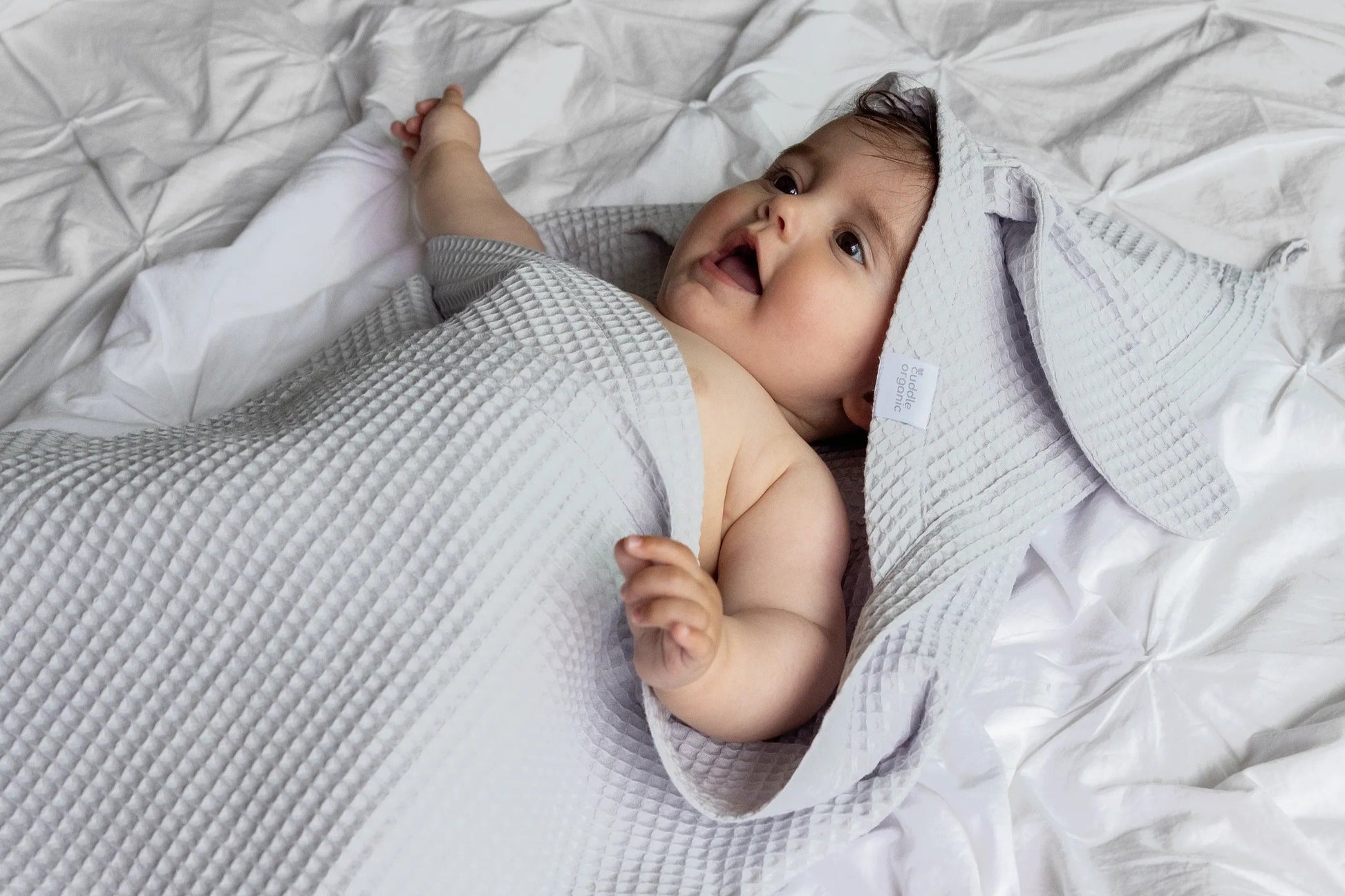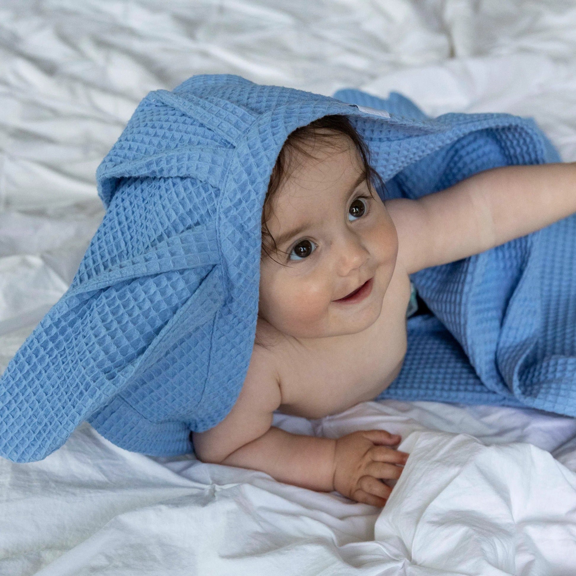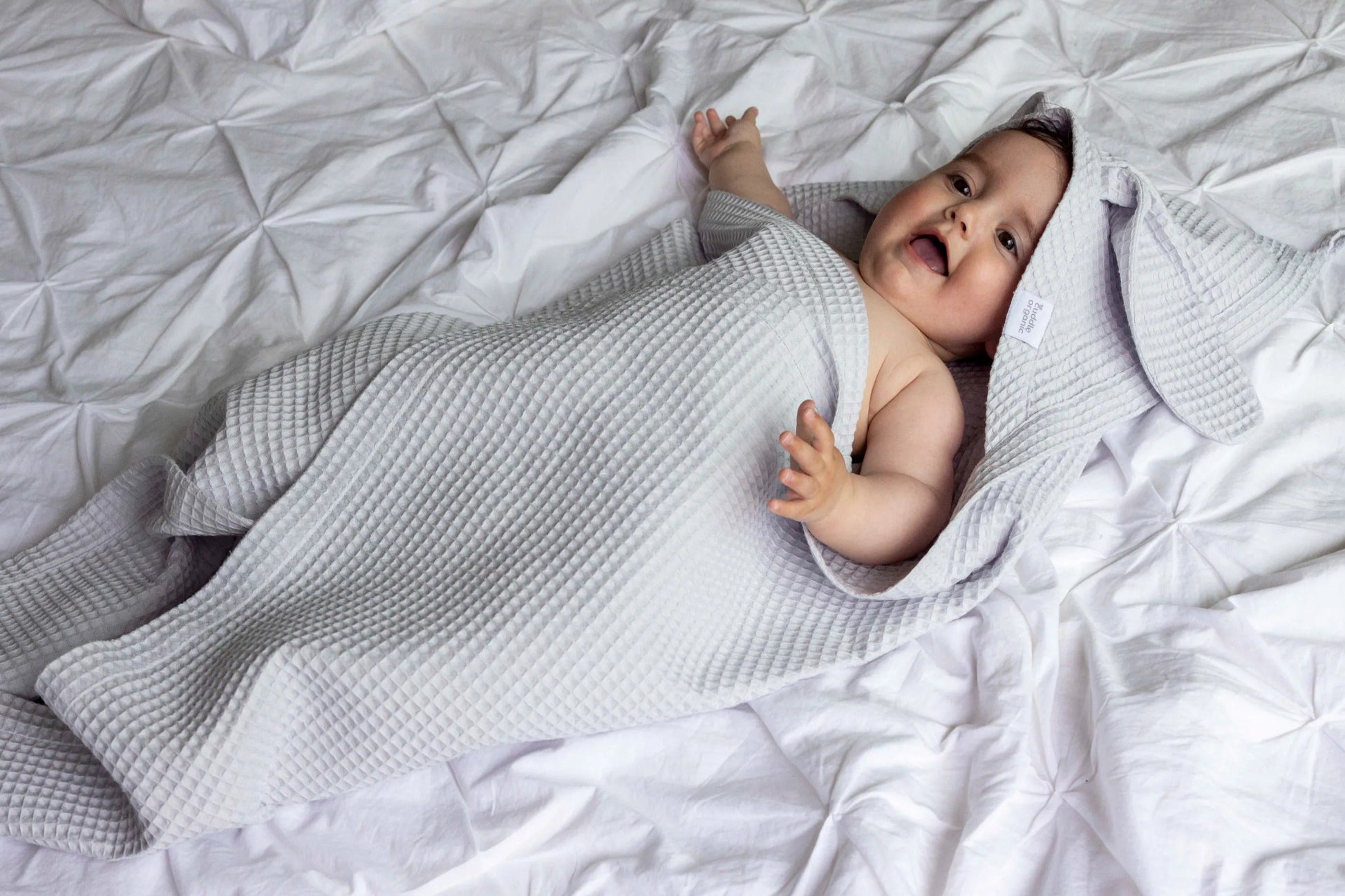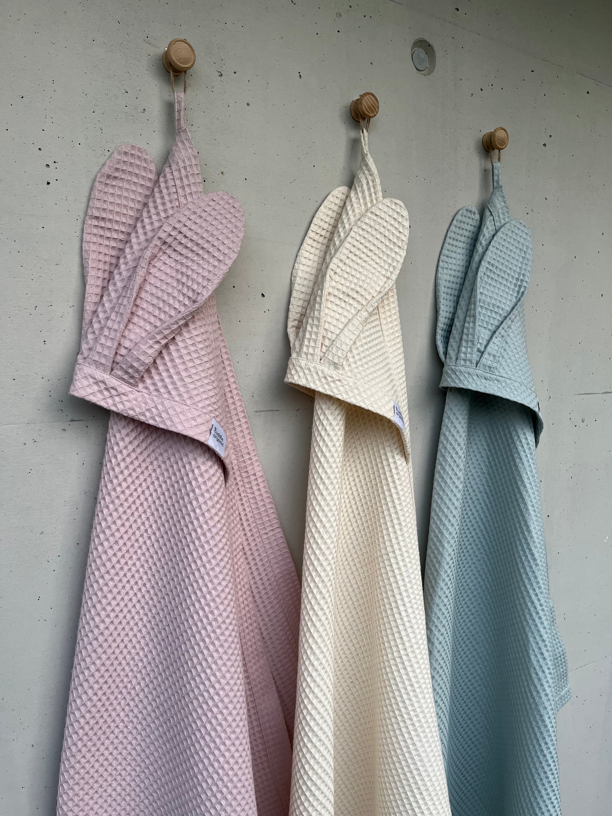 Crafted with care from 100% organic waffle weave cotton, this generously sized towel is perfect for after bath time or a swim. The fabric is lightweight, absorbent and fast-drying, and maintains these properties even after frequent washing. The towel packs small for on-the-go use. The hood keeps little heads warm and the cute bunny ears add a touch of sweetness to everyday moments with your baby.