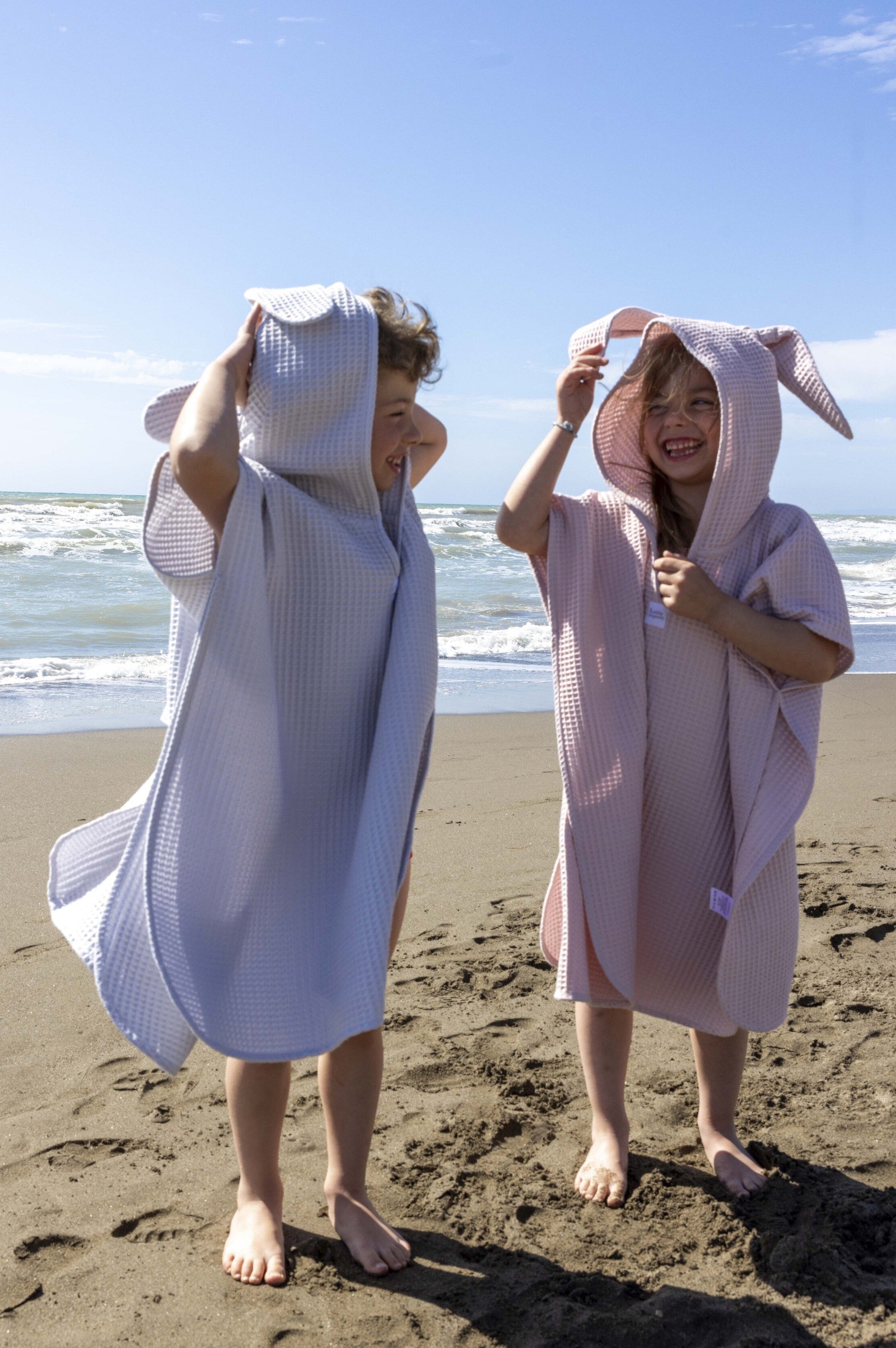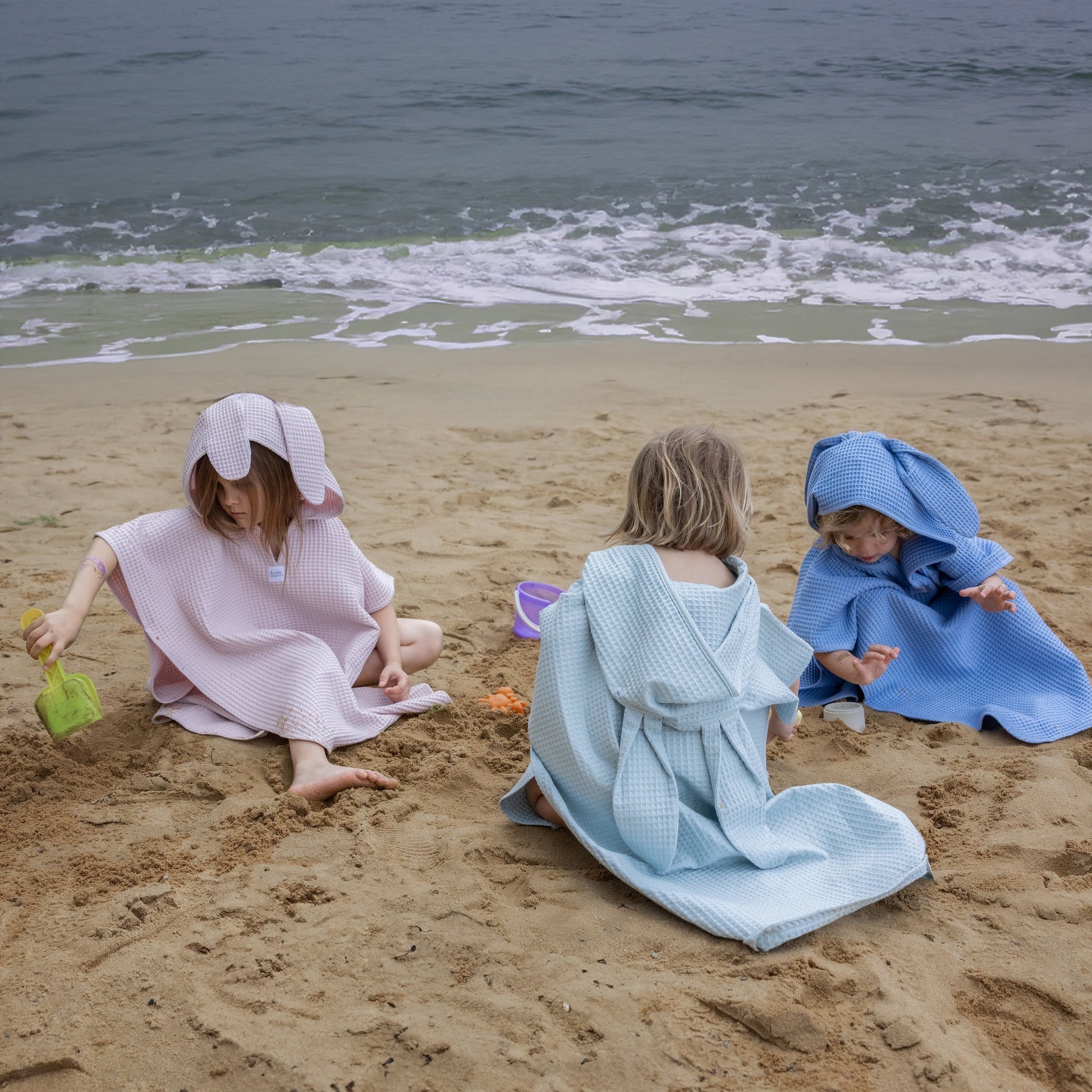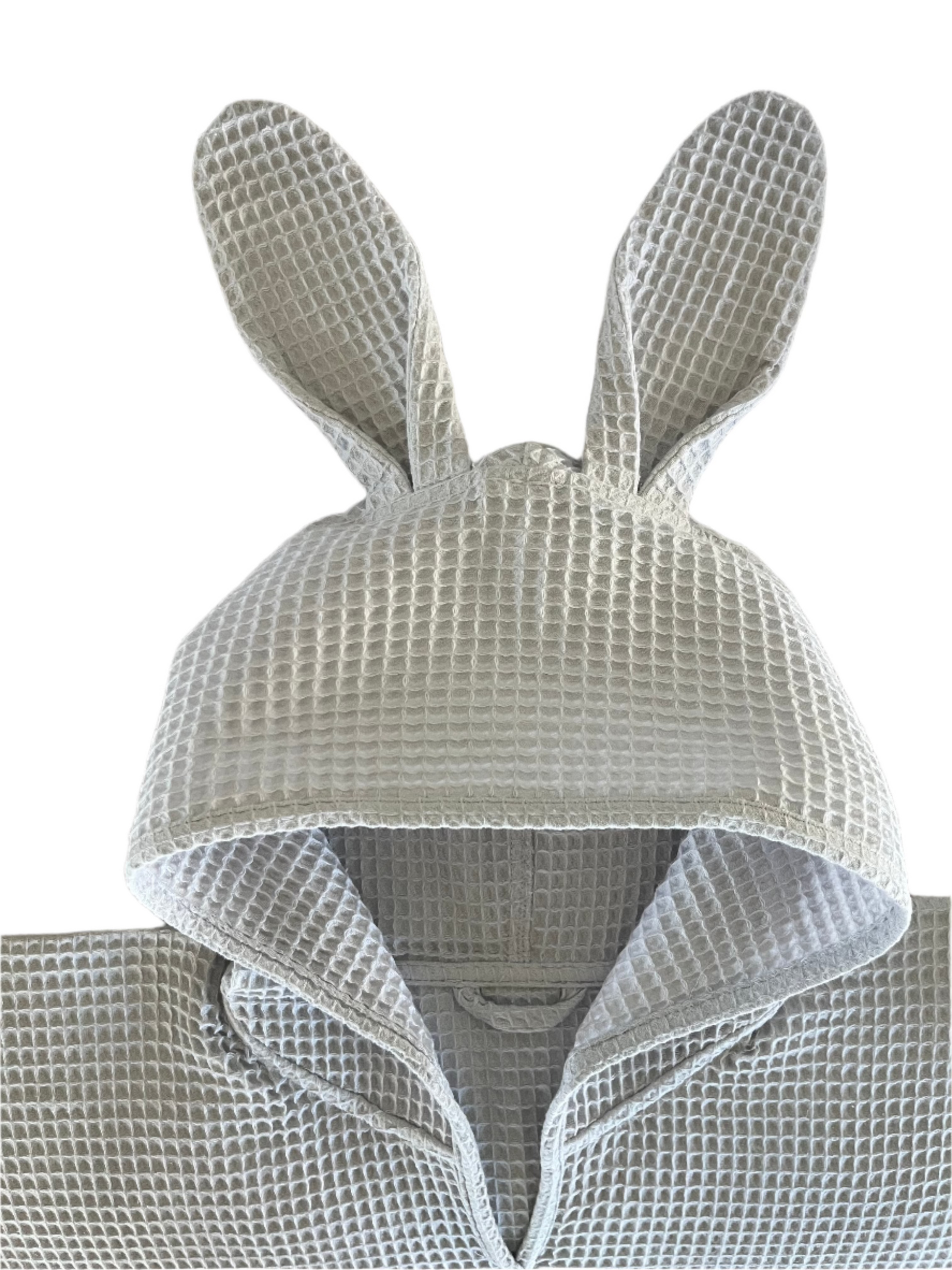 Keep your little one cozy and dry with this super soft poncho with bunny ears. Perfect for bath time, pool days, or beach trips, it’s both practical and fun. The poncho has snaps on the arms for easy movement without slipping off.